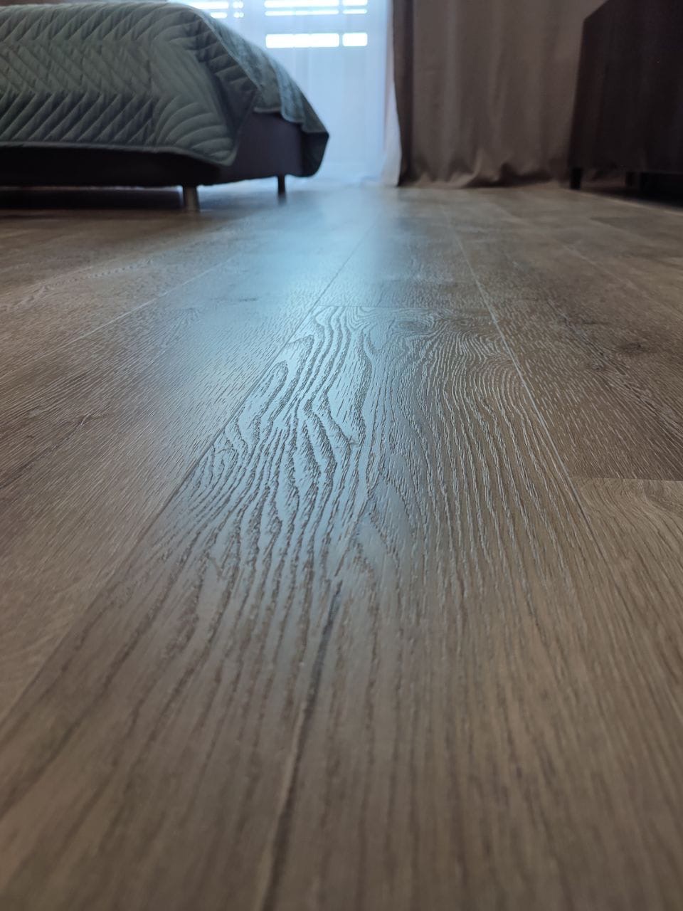 Кварцевый ламинат очень отличного качества, приятно ходить, не продавливается мебелью, . КРАСИВАЯ ЦВЕТОВАЯ ГАММА НА ВЫБОР. Не видно стыков.